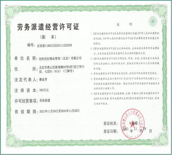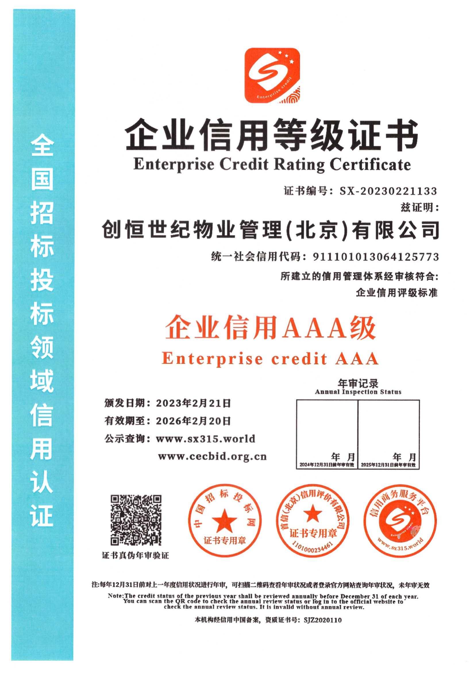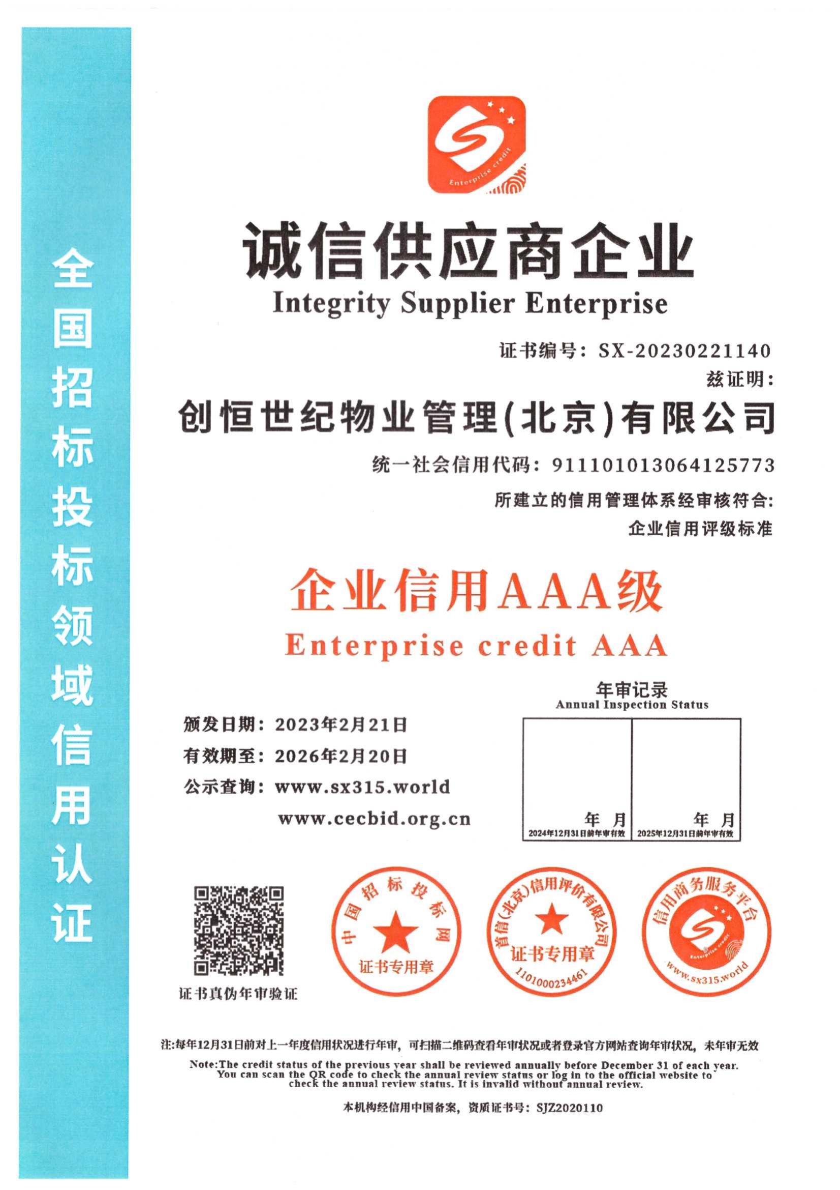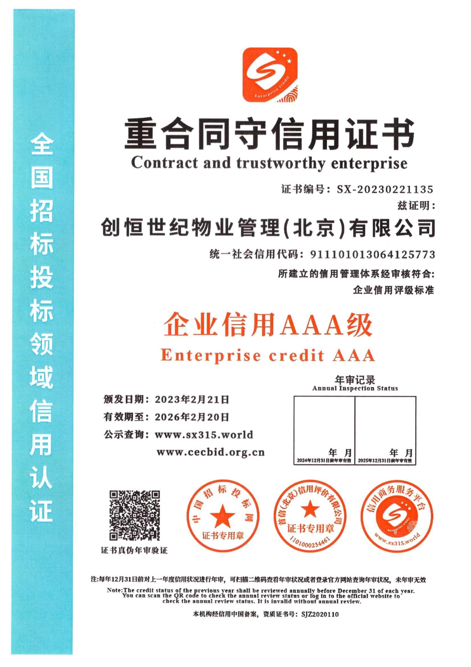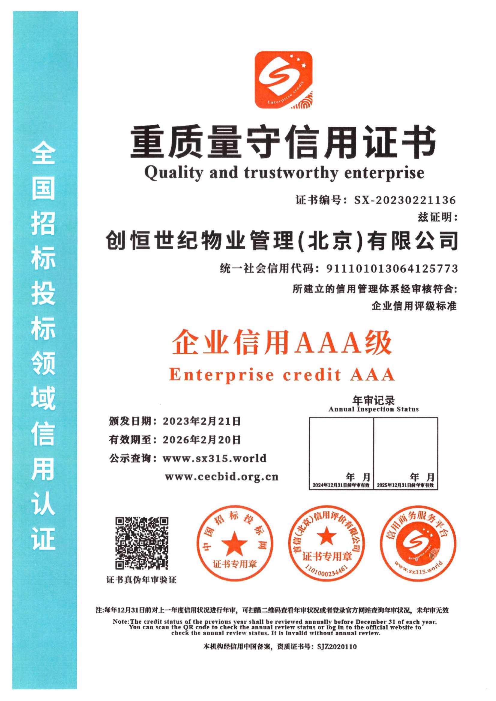 创恒世纪物业管理(北京)有限公司成立于2014年6月,是一家注重现代科技成果转化的保洁服务公司,是北京清洁行业协会的会员单位。为提高物业保洁服务的效率和科技水平,公司为各服务项目先后购置了全自动洗地机,多功能扫地机、全自动地毯清洗机、沙发清洗机、扫地机器人等先进的清洁设备,提高了服务效率、品质与层次。