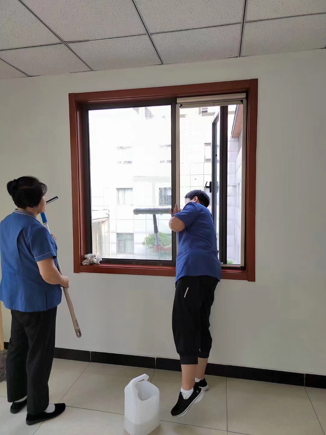 1、开荒保洁玻璃的标准:目视无水痕、无手印、无污渍、光亮洁净。